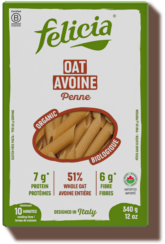 No! It may be wearing a clever disguise, but this is actually a box of the finest organic whole grain oats, in a shape inspired by centuries of tradition and made possible by modern innovation. Oats are a powerhouse of nutrients, making these penne a good source of protein and fiber. Oats are also naturally gluten-free and rich in beta-glucans- and they’ve never tasted so good.